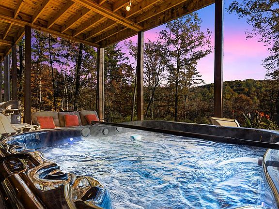 A mountain masterpiece where luxury meets laid-back living—this 4-bed, 4.5-bath retreat, sitting on 1 acre, was built in 2020 and designed to impress at every turn. Perched on a ridge with year-round mountain views, this 2,952 sq ft escape offers both an elegant full-time residence and a proven lucrative short-term rental opportunity in one of Blue Ridge's most sought-after gated communities. Step inside to discover professional interior design that captures the essence of rustic sophistication. The heart of the home features a chef's kitchen with leathered granite countertops, ample storage/counter area, stainless steel appliances, large island/bar that open seamlessly to the dining area and living room with a stone fireplace—all flowing onto the expansive deck where an outdoor fireplace and sweeping views steal the show. The main-level primary suite is a sanctuary of its own, complete with a luxury ensuite bath with walk in closet and private fireplace. Upstairs, you'll find a charming bedroom framed by sliding barn doors overlooking the great room, another ensuite bedroom with a private deck, and a stylish full bath for guests. Downstairs, the terrace level was built for fun and relaxation-boasting polished concrete floors, a spacious living area with fireplace, wet bar, foosball, bunk room, full bath, laundry room, and direct access to the grill patio with large hot tub. Outside, a concrete driveway and all-paved access make getting here effortless, while a short stroll or drive leads you to the community's private pavilion on the Toccoa River, perfect for fishing, kayaking, or gathering by the water. Fully furnished and completely turnkey, this home has been thoughtfully curated from dcor to fixtures-offering a move-in-ready escape or an immediately rentable investment property. Whether you're searching for your own mountain sanctuary or a proven income-producing STR, this property delivers the rare blend of refinement, recreation, and pure mountain magic.