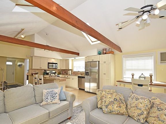 Are you a beach lover? Here is your chance to own this meticulous Contemporary style home situated on a double lot just steps from Swift's Neck beach! Upon entering you'll find a spacious open floor plan featuring cathedral ceilings and tons of natural light. The updated kitchen offers high-end cabinets, granite countertops, s/s appliances, a kitchen island & opens to the living room! Sliding glass doors lead you to a 3-season room complete with a gas fireplace where you can relax year round! You'll also find 3 bedrooms & a full bath on the main level. Take the spiral staircase to your master suite located on the 2nd floor! The master bedroom offers cathedral ceilings, a full bath & a private balcony! Additional features include an outdoor shower, L-shaped composite deck, a fenced yard w/ patio, storage shed w/ electricity & large paved driveway! Don't miss the opportunity to enjoy the beach year-round!
