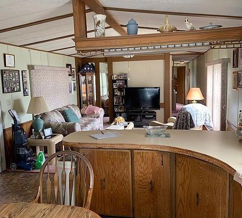 This quaint two bedroom home is in a nice quiet community. Best spot in the park as it is facing Middle Road and the parking lot and only has a neighbor to the right. Private side yard. Has a shed and a full sun porch. Two nice sized bedrooms with lots of closets, Fully renovated bathroom (handicapped accessible), and nice open concept eat in kitchen with built ins and desk area which is open to the living room. Washer & Dryer are in the hall area. Original owner. Can come completely furnished if you like. Could be a fun little shore retreat! Sold ''As Is''. Nice & cool with the central air that was updated two years ago. Good credit is a must to support the monthly maintenance.