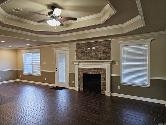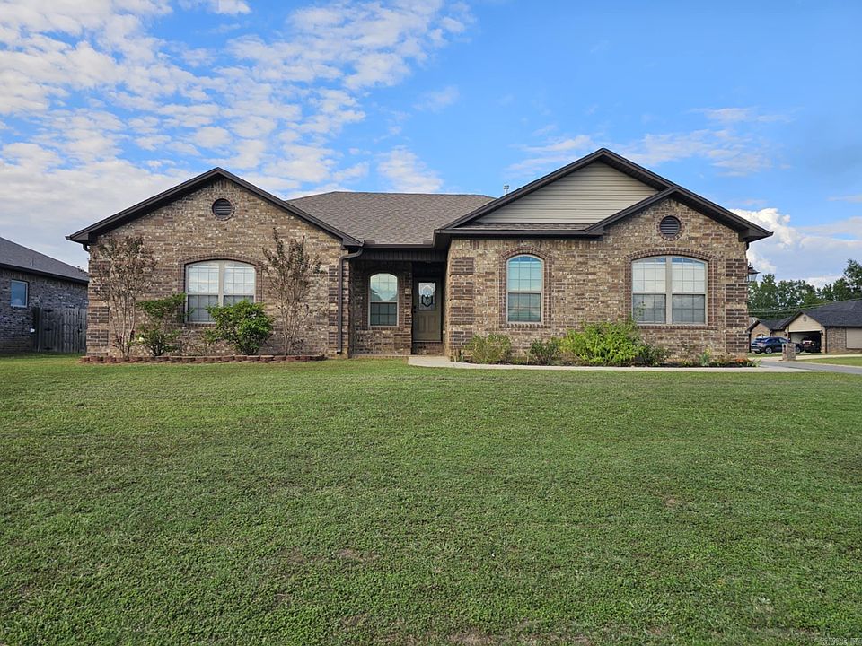 Come see this well maintained home with a corner lot and side entry garage in the Churchill Downs Subdivision. 3 bed/2 bath with split floor plan. Living room has double tray ceilings, rock fireplace with gas logs and wood like porcelain tile floors. Living room opens to a beautiful kitchen with granite countertops, tile backsplash, under cabinet lighting, antique finished cabinets, stainless steel appliances with refrigerator, gas stove, breakfast bar and kitchen/dining combo. Master suite has custom tile shower, jacuzzi tub, beautiful double vessel sinks and a large walk-in closet. Separate laundry room with folding table. Covered patio to enjoy your coffee or turn the game on overlooking your fully fenced backyard with firepit. You don't want to miss out on this one!