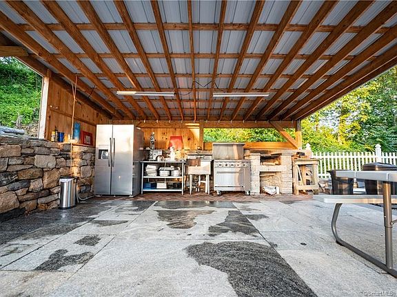 Fabuluos four bedroom home built in 2019. Hardwood floors and granite galore. Huge open kitchen/dining/living room area with beautiful stone fireplace. Massive outside patio area holds a complete kitchen with hot and cold water sink, refrigerator and grill area. First floor bedroom has an attached full bathroom. Low maintenance/low cost home with no grass to mow and solar panels. Beautiful stone walks encircle the property which is on a private road. Fully finished basement is set up as a family room.