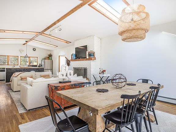 Dining under the starsDen spaceOpen floor planExpansive lawn spaceHigh ceilingsBright and airyStainless steel appliances