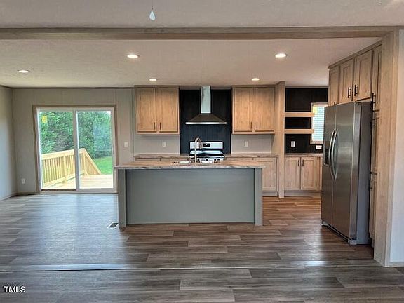 New 4 bedroom/2 bath manufactured home on large lot near Angier located in Johnston County. Home is spacious and inviting. Beautifully landscaped, large open back yard. New SS appliances and new Washer and Dryer. (Washer and dryer to be delivered 1st week in August) Large 30x10 back deck. New gutters. Manufacturer one year warranty. Seller is licensed NC real estate agent.