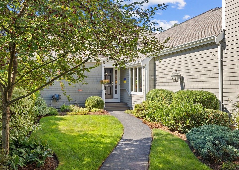 THE MEADOWS! Rarely available tastefully renovated spacious 3 bedroom home with 1st flr primary suite, one of the Largest style Units in the complex. Sunny cathedral ceiling living room with sliders out to 17 x 22 new deck. FIRST FLOOR PRIMARY SUITE with slider out to deck, full renovated bathroom with walk in shower & separate soaking tub. 1st flr laundry, beautiful office/ den with sliders out to deck, chef's kitchen with bamboo counter tops, stainless appliances. Lovely dining room with picture window to enjoy the beautiful scenic view. Spacious walk-out lower level with family room -built in bar area & slider out to stone patio. 2 car garage. This desirable neighborhood is ideally located near Hingham Center, walking trails, driving range & playing fields. Current owners replaced & renovated- windows, sliders, skylights, kitchen, bathrooms, generator, decks, awning, teak wood floors, furnace, A/C, fireplace, stairway & railings, ceilings, hot water tank, water filter & more.