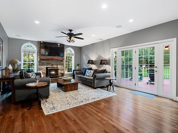 EXCEPTIONAL DETAILS AND FABULOUS GATHERING SPACES…YOUR DREAM COLONIAL ON TRANQUIL CUL-DE-SAC HAS ARRIVED! Preeminently sited on lush green acreage surrounded by woodlands you’re sure to fall in love with this stately home. A brick walkway leads past mature landscaping to a grand foyer awash in gray tones. Curl up with coffee in the sitting room and begin your day in this inviting retreat. Dash off a few emails in the office ideal for work-from-home and when guests arrive escort them to the designer kitchen complete with a suite of Thermador appliances. Enjoy charcuterie around the island or grab a drink from the bar area as you note abundant fine details. Dine in style in the elegant dining room or in temperate months opt for alfresco meals on the expansive outdoor Trex deck where you’ll take in panoramic views of the secluded backyard. The family room beckons guests to relax in front of the fire for conversation or retreat downstairs to the rec room where the mixologist will be delighted by a full wet bar and fine built-in cabinetry and a handy bath keeps the fun on one level. Upstairs the master sanctuary is thoughtfully set apart. Soak your cares away in the stunning en suite spa bathroom and three additional sizable bedrooms are sure to delight. Binge watch the latest show, play a rousing game of cards or create homework central in the multi-purpose room or use as extra overnight space as needed. Impeccably maintained and loved! GRACIOUS LIVING AWAITS!