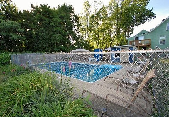 Fantastic owner occupied multi family or investor owned property with great income.(Interior photos attached to the listing are of the first floor unit) First floor unit is currently owner occupied with 3 brs, master has slider to deck that overlooks the green private backyard, large eat in kitchen, dining room and living room. 2nd floor unit is 4 rooms, 2 brs. Rear unit is two floors with 3 bedrooms, living and dining rooms. Great big beautiful level back yard with fenced in ground pool. Walkout lower level basements with laundry hookup. Plenty of off street parking, great commuter location with easy access to train T station, Rt 2 & 190 for traveling, schools and shopping nearby.