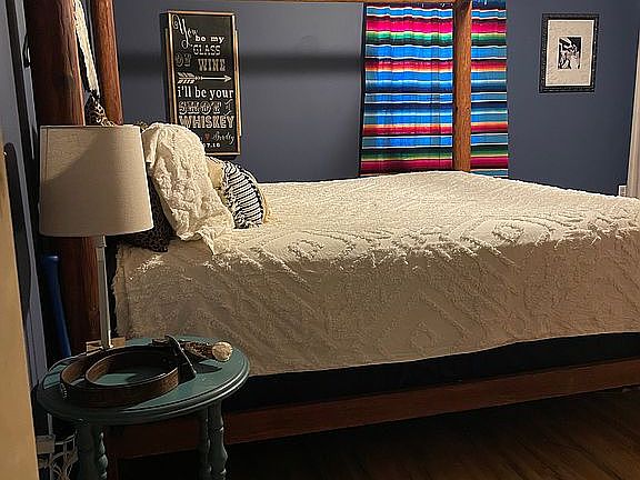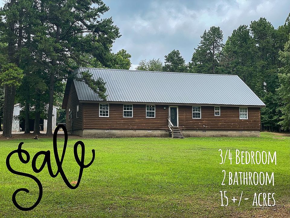 Country setting with a beautiful pond & approx 15 acres!!! This rustic cabin style home has 3/2 with a bonus room (could be a 4th bedroom upstairs). All kitchen appliances convey. Living room has high vaulted ceiling! Freshly painted interior and new log siding on exterior! Split floor plan. Outside is 20x40 metal workshop and a nice size pond. Fenced area is perfect for livestock.