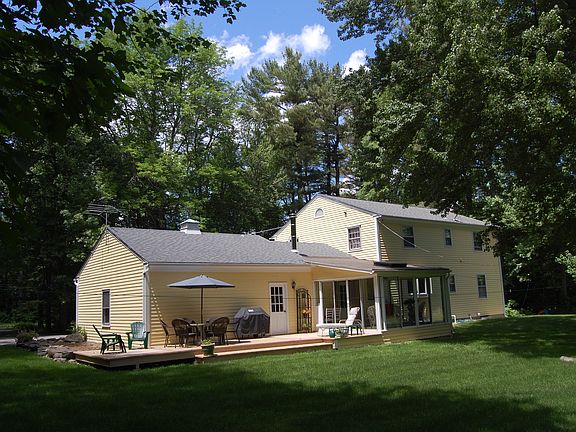 Worry-free living in nature's paradise! 4BR Colonial on 5 gorgeous acres with new roof,new septic,new furnace,new bathrooms,new hardwood,new carpets...Open concept kitchen/family room flows to 3 season room and deck,bringing the outdoors in. Updated appliances in gourmet kitchen,with Corian counters,huge island,oak cabinets and ceramic tile floors. Front to back living room with Brazilian Cherry floors and fireplace. Dining room/office complete the main floor. 4 bedrooms up with casual chic bathroom and elegant spa bath in master. Lower level finished with rustic pine walls,workshop space,laundry and cedar closet. 2 car garage Paved/fenced recreational space in back yard-great for tennis,basketball,biking and parties! Best of both worlds-totally private,but close to neighborhoods,Brodie Park,Rt 8 and Rt 44. Short rides to all schools-bus stop at end of driveway. Best value in New Hartford