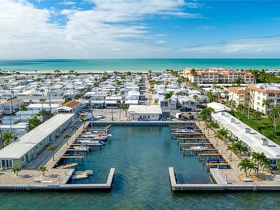 Here's a great opportunity to own your own little getaway on world-famous Longboat Key! Located across the street from a gorgeous deeded beach, and perched on Sarasota Bay, Twin Shores offers everything you need to join in on the island lifestyle. Spend your days swimming in the pool, fishing off the docks, kayaking, or just soaking in the sun. Twin Shores even has its own marina where you could keep your own boat for a very nominal fee! This home has been freshly painted and had new luxury vinyl flooring just recently installed. It features a living area that is open to the kitchen with plenty of room for a nice sized dining table. It has a full bath off the kitchen and one bedroom, big enough for a king size bed with its own en-suite full bath, all cooled (or heated) efficiently with a Mitsubishi electric ductless indoor air conditioner. Offered furnished (with a few exceptions) this home in a 55+ community is the perfect solution to the beach house you can run away to on a very affordable budget. Besides the gorgeous beaches and fabulous sunshine, Longboat Key and her barrier islands are also home to many restaurants both local and fine dining, and the shopping and night life of Sarasota is a short drive across a beautiful bridge. This home won't last long!