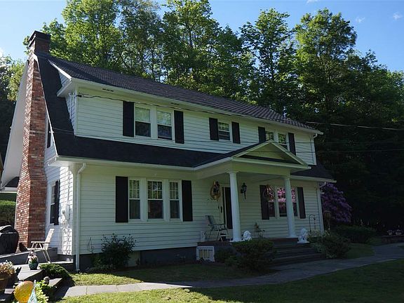 Hidden gem! This Dutch Colonial home is tastefully positioned on a knoll on 5+ acres of impeccably manicured grounds. The house offers 3 BR's 1.5 Ba's, stone fireplace in large living room and open kitchen/ dining room combo, and laundry room. Exterior features include: inground pool with bluestone pool decking, Gazebo, luscious landscaping, long paved drive, stone walls, mature trees, open and wooded grounds and the garage/ workshop/ studio that people dream of. The garage can accommodate several cars and includes a heated workshop. The second level is clear-span and ready to finish to your hearts delight with lots of natural sunlight which artists love! Stunning, Elegant and Amazing hardly describe this homestead.