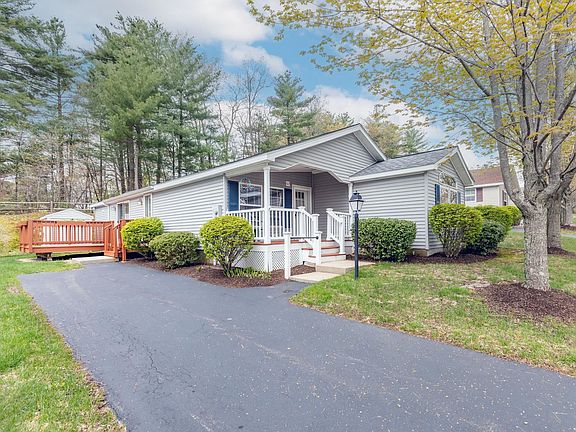 Welcome to Ledgewood, Manchester's most sought after 55+ Community! Freshly painted interior with neutral tones and updated flooring in the kitchen and dining. Accented with skylights and vaulted ceilings throughout. Primary en suite with large walk-in closet and two additional generously sized bedrooms complete this floorplan. Slider is off the main living area, open to a freshly painted deck and outdoor space - ideal for summer weather. Monthly association fee includes landscaping, snow removal (right to your door), irrigation set up and winterization, trash removal, land lease and club house. Close to walking trails and Massabesic Lake, restaurants and golf! Easy one level living, come see for yourself! Showings start at the open house Saturday April 6th Noon-2pm!