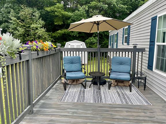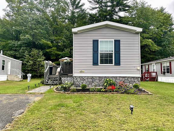Brand new, affordable home conveniently located in Country Lane Estate in Lewiston. This home stands out with its beautiful landscaping, insulated vinyl stone skirting, large deck and storage shed. Inside, the home features modern finishes, a large eat-in kitchen, primary bedroom with ensuite, laundry room and second bedroom. The lot is situated near the back of the association and abuts woodlands offering increased privacy.