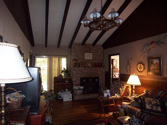 Nestled in the trees on 1.52 acres. Hardwood floors,brick fireplace with insert, cathedral ceiling with beams in Great Room. Large 19x17 screened porch will accomodate a lot of guests. Great home for year round or summer home. Another building site with branch on property.