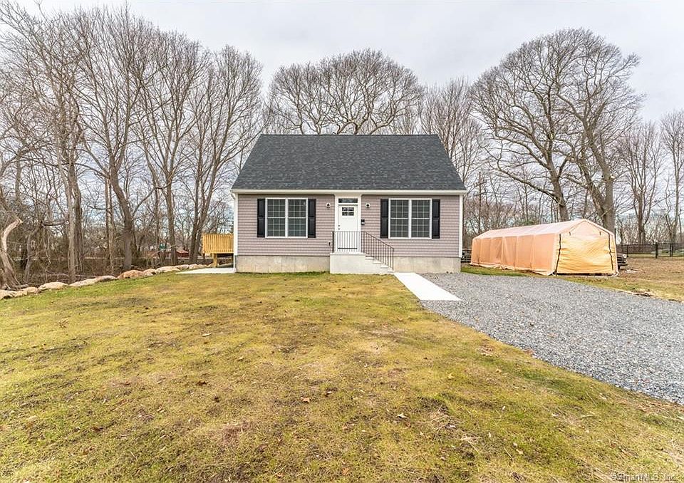 This brand new Country Cape, located in Groton, Connecticut, is ready for occupancy.This home features a spacious layout with a center island kitchen featuring breakfast/dining space with tiled floors. Additionally,there's a first-floor full bath with laundry facilities and one bedroom on the main floor. The living space opens up to a 12 x 12 sun deck and a 11 x 12 concrete patio. On the second floor, you'll find two other bedrooms, which are a must-see, as they are not your typical cape-style bedrooms both fitted with large walk- in closets. Spacioys center hall bath. The basement is large and unfinished, offering endless possibilities for customization. You could transform it into a game room, family room, or anything else you desire – it's a great space with loads of potential. This property is situated on a peaceful cul-de-sac, yet it's conveniently close to shopping, stores and offers an ideal location for commuting to various destinations. It's even within walking distance of General Dynamics. Don't miss the opportunity to schedule a showing and see this wonderful new construction home today. Plus, it's connected to city water and sewer, making it even more appealing for your future residence. Driveway easement and maintenance in place. Ovenrange, refrigerator, dishwasher and microwave included. Taxes are on land only