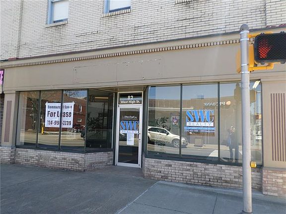 LARGE OFFICE SPACE AVAILABLE FOR LEASE - Corner of High Street and Morris Street - Stately looking brick building in high traffic location with public parking across the street. Very spacious welcome room and large open offices, conference rooms, 2 bathrooms. Full basement for storage. $1300 per month lease; Owner pays gas bills - tenants pay electric, water, sewage & garbage.