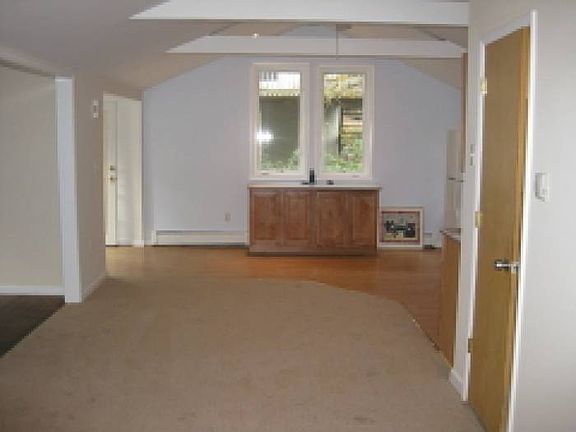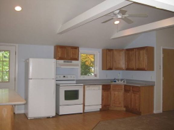 Freshly painted and new carpet. Move right in and enjoy this open floor plan with vaulted, beamed ceiling. Hardwood floor in living room. Deck off the kitchen overlooks backyard.