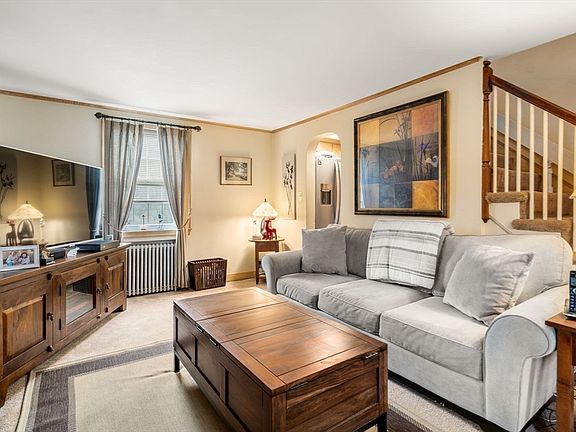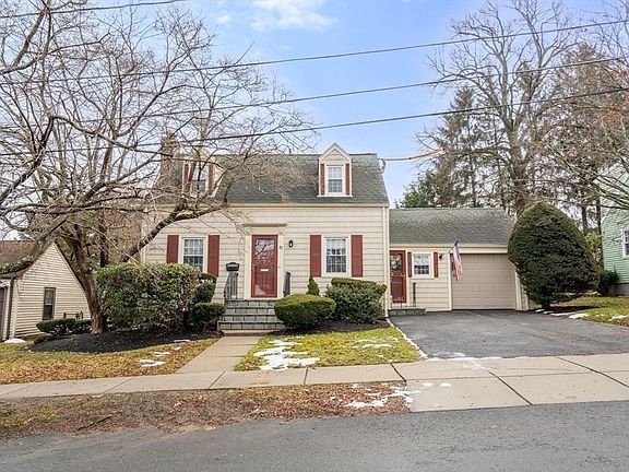 Impeccable full dormered Cape on iconic tree lined street. Pull in to oversized garage and 4 additional off street parking spaces on double width driveway. Lovely Dogwood tree ,Holly bushes and Japanese Yews frame the front of the house. Enter the front door turn left front to a front to back living room with fireplace and stairs up or turn right at entry to first floor bedroom, office,dining room, your choice based on lifestyle. Modern kitchen with corian counters ,solid wood cabinets, gas cooking. Kitchen has entry from driveway to a breezeway or garage to breezeway in. Kitchen features a bright breakfast nook overlooking beautiful fenced level yard with multiple plantings. Hemlock,Rose of Sharon, Japanese Yews,Japanese Red Maples and upright Arborvitaes for privacy.The large deck has steps down to heated Gunite pool. Ask about video of rear yard in summer.The second floor features two front to back bedrooms with ample closet space and full bath.Mostly hardwood floors.Ideal location.
