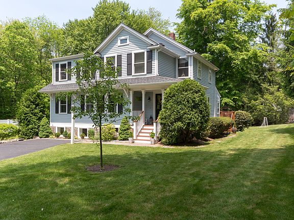 Fully expanded in 2010, this charming farmhouse has 4 bedrooms, 3 full baths and 1 half bath & includes an all new front entryway & porch, mudroom, expanded DR & new office, all new jack & jill bathroom, walk-in master closet, new roof & a fabulous wraparound deck. Sun-filled throughout, the 1st floor living space is open & practical creating a friendly atmosphere for entertaining in its spacious family room w/fireplace, updated country kitchen, or its lovely LR & DR. The finished walkout basement offers ample play space & dry storage. Wonderful master bedroom w/cathedral ceiling, full bath, his & her closets plus three additional bedrooms and two full baths complete the 2nd floor. Total privacy & entirely fenced in on .73 serene park-like acres just steps to town, train & more!