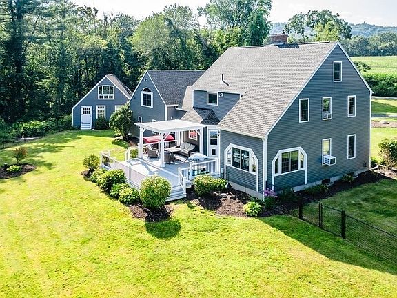 Amazing Colonial home on 1.54 acres of land, 2 car Garage, Fenced yard (NEW 2017). Separate building for Workshop w/Loft and 1197 Sq Ft. of space, Electric panel & ability to heat. 2 Master Bedrooms, Roof approx. 10 yrs, Septic NEW 2017, Trex Deck 24' X 24' NEW April 2021 w/ Pergola refaced & painted at same time. Paver patio NEW 2021, 200 Amp service, Central Vac, NEW Floodlights 2020, Walk up attic for storage. Wide Plank Wood Floors thru out the whole house. Barn doors thru out also. Kitchen w/ updated cabinets, granite counters, Huge island, Wide plank wood floors, Stainless appliances(Kenmore PRO)(Refrig 2017, DW 2019) 2 Ovens, Food warmer, 2 sinks, Coffee bar & Pantry. Dining Room right off the Kitchen w/ custom built cabinet. Living Room on other side of Kitchen with Wood Stove(Liner 2018) to help heat your home. Sunroom off LR w/flooring 2019. 2 Master bedrooms-1 on either side of house, BOTH have en-suite bathrooms. 2 more Bedrooms, 1.5 baths, Laundry room, Storage room.