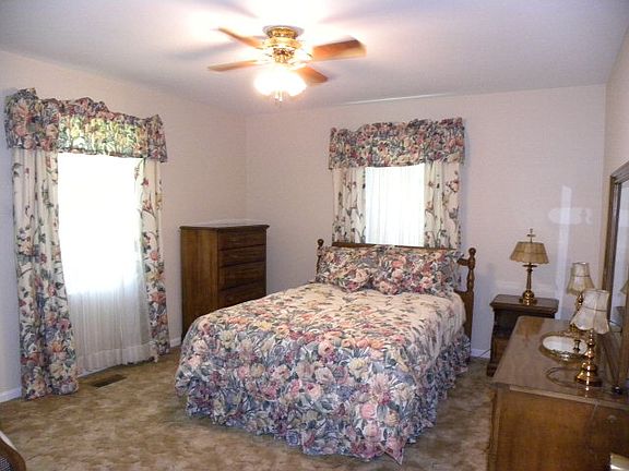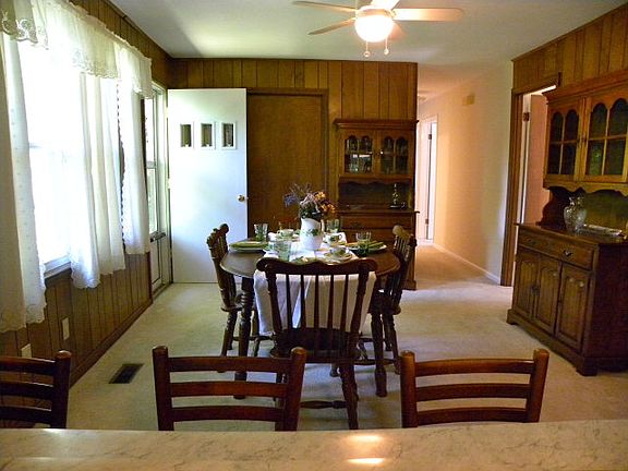 Impeccably maintained home for sale just outside city limits! Constructed by Bradley Company in 1975 this brick ranch is in excellent condition, inside and out!! There have only been 2 families to live in the home. Inside, this home welcomes you to sit for a spell in the naturally lit living room and enjoy the quiet surroundings. The heavy duty carpeting throughout the home covers the original hardwood flooring. There are 3 comfortable sized bedrooms with roomy closets. The original heating system in the home is in the ceilings, which will still heat the home if you prefer but a heat pump has been installed to reduce energy use and keep the home comfortably cool in the warmer months. Roof replaced in 2012 with architectural singles and new guttering installed as well. a 1 YEAR HOME WARRANTY at closing. A really nice home!