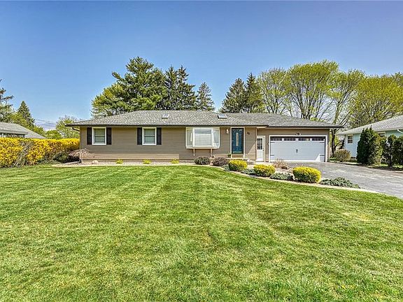 Remarkable Ranch~1800sf~Highly desirable open flr plan w/ cathedral ceilings & MANY updates! Spacious Eat-in kit w/ tile backsplash, gas cooktop & SS appliances~Great room w/ beautiful hardwood floors, lg windows to back yard & 2nd staircase to bsmt for easy access~Recessed lighting throughout~Formal living room has w/w carpet, bay window w/ window seat, crown molding & skylight~Fresh paint & upgraded 6" base moldings throughout~Updated main bath has double vanity & mirrors, tile backsplash & new LVP flooring~Master bdrm features cathedral ceiling w/ wood beam, walk in closet & updated master bath w/ new flooring, whirlpool tub & stand up shower~Fin BSMT adds extra living space! Laminate floors, recessed lighting, dry bar, 3rd FULL bath w/ ceramic tile floors & glass shower doors~Plus BONUS area w/ mounted mirrors & glass block windows, great for a home gym or play area! Lots of unfinished storage space as well! New vinyl siding & garage door (2013), new composite deck (2017), roof (2013), shed w/ electric & new siding (2020)~Professional landscaping w/ concrete curbing~Fully (privacy) fenced yard~Hardwoods under carpet in front LR & girls bdrm~Showings start 4/16, Neg 4/19 @12pm