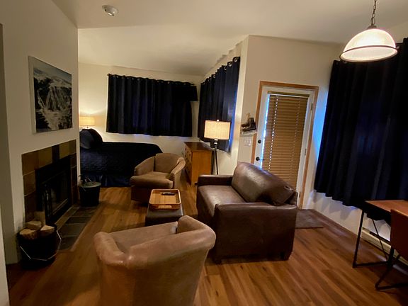 The location is fantastic! East Village, one building over from the Super Bee Lift and overlooking Hole #10 of the Copper Creek Golf Course. Stroll to the nearby Copper Station, home to the base of the Super Bee Lift, JJ's Rocky Mountain Tavern, golf pro shop (summer), ski & ride shop (winter), and Camp Hale Coffee. Also, next door to Copper Station, you will find Christy Sports offering sales, rentals and tuning services. In front of The Greens, you will find stops for ALL free shuttles for Copper (winter & summer seasons) and the free Summit County Stage connecting Copper to Frisco, Breckenridge, Keystone, Silverthorne and Dillon (year round)! Hop on I-70 for a quick ride (16 miles) to Vail. End unit with windows on 2 sides offering spectacular views of Copper's ski slopes, the Super Bee Lift, A Lift, golf course and the Ten Mile Range. Ground floor condo with back door that opens to the Greens' backyard and a small private patio which overlooks the putting green for Hole #10 of the golf course. Recent upgrades include: new lux vinyl flooring, new wood base trim, freshly painted top to bottom, all new furniture and furnishings including: sofa, 2 swivel chairs, ottoman with storage, queen bed with headboard, mattress, box spring, linens, pillows, 2 night tables, 2 table lamps, floor lamp, dresser, tall dresser, 2 bar stools, fun mountain art, all kitchenware including All-Clad stainless cookware, tableware, cooking utensils, glassware and flatware, small appliances including microwave, toaster, blender, crockpot and Keurig coffee maker. Storage in unit: 6-foot closet with by-pass wood doors, large pantry closet adjacent to kitchen plus in building's locker room there is a private year round ski locker. 440 square feet. $2,750 month.