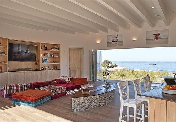 Taken off the market. Call for info. This magnificent Open Air home captures dramatic views through crystal clear, floor to ceiling sliding glass panels that span the entire length of the home. The entire front and back of the home can be opened to the elements, creating a seamless transition to your own private beach. . The ultra open floor plan was designed to take advantage of its fabulous, close up ocean views. Soaring ceilings let ocean breezes flow through the home.This one of kind home is not just near the beach... It is ON THE BEACH! - a contemporary master piece in the midst of an old New England village - enjoy your private beach during the day or a beach bon fire at night - a short walk to town past the picturesque harbor and the waterfront mansions to enjoy a meal at the local restaurants or pick up some lobsters as the day boats unload their catch at lobster pound.