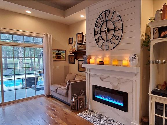 Rarely available pool home in Rose Hill on the 15th hole. Beautifuly updated 4 BR /4 Bath custom home includes newer roof (2015), newer light & bright kitchen w/ quartz counters, S/S appliances, recessed lights, tile backsplash & updated cabinetry. 3 BRs on main floor & huge 4th BR/full bath on 2nd fl. Newer wood floors, new electric FP, newer interior/exterior paint, New water heaters, new pool pump, new front door with transom window. Relax & enjoy the private pool, screened lanai and fenced yard with golf views! This home has too many upgrades to mention. A must see! Gated community. Close to Downtown Bluffton and Hilton Head Bridge.