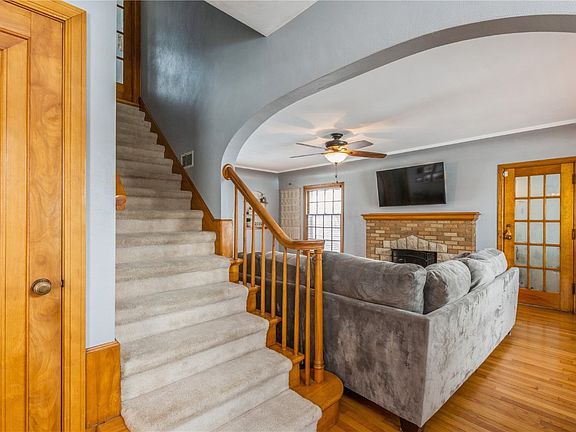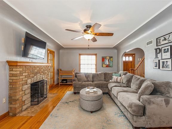 New England Colonial style home with attic dormers offers tons of character and charm from the wood floors and trim to the coved and trey ceilings, arched doorways, brick fireplace, and tons of old world charm! The additional sun room offers peace, tranquility, and extra living space! The lower level boasts a beautiful custom stone fireplace and additional space for you to create your own usable area. Primary bedroom easily fits a king sized bed and has his and her closets. 2 additional bedrooms offer spacious closets, and built-ins for even more storage! Enjoy the newer landscaping in the private back yard. This home has the perfect blend of modern touches while still keeping the historical aspects intact. Book your showing today this home will not disappoint. Easy access to anywhere and close to shopping, restaurants and the NewBo market area.