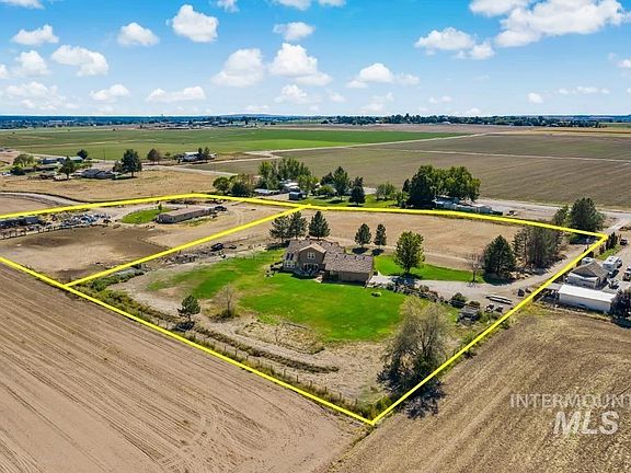Wonderful opportunity for investment/guest home w/2 sep parcels & a home on each. Private, close-in acreage tucked off of Homedale & Farmway Rds. Main home is a beautiful, 2-story custom "Bill Pugh" home. 3,497 SF w/main-level master suite & 3 add'l bdrms & full bath upstairs. 4th bed could be fabulous bonus/TV rm. Extraordinary 2-story entry opens onto lrg living room w/incredible built-in pellet stove, sep office/den, eating area & fantastic custom kitchen w/built-in range, b-in oven, dishwasher and refrigerator. New flooring throughout! Lrg main-level master bed w/private sunroom/gym area off the master bath. 2nd home on adjacent parcel is 1716 SF manufactured home on a foundation, 3 beds, 2 baths. Lrg storage building, lean-to for animals, pasture areas & views galore! So many possibilities including 2 additional "ancillary home" building permits (1 on ea parcel). Country living w/in minutes to downtown Caldwell, entertainment, shopping, hospitals & easy freeway access.