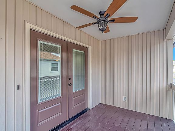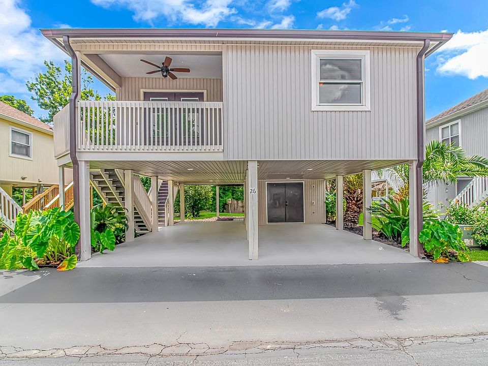 Amazing opportunity to own this beautiful beach bungalow in one of the most desirable locations on the beach. Just a few short blocks to the ocean, main street, and all local area attractions, this 2 bed/2 bath home has been immaculately maintained and renovated. Each bedroom features an on suite bathroom and the master has a large walk in closet with closet system. The kitchen has been completely remodeled with custom cabinets, granite countertops, custom pantry cabinet, new refrigerator, stove, and microwave. Main living area features ceramic tile flooring, dimmable can lights, and gorgeous custom storage/work center built-ins used to optimize the space. New ceiling fans and Levelor blackout blinds on all windows. Roof, HVAC, windows, and gutters have all been replaced during seller's ownership. Trex decking on the front porch, deck, and stairs, and new railing and pickets on the front porch.Downstairs features an attached storage building with plenty of extra storage room. The community boasts an oversized community pool with hot tub, kiddie pool, and picnic seating area. Low HOA fees! Come and see this home soon as this piece of paradise will certainly not be on the market for long!!!