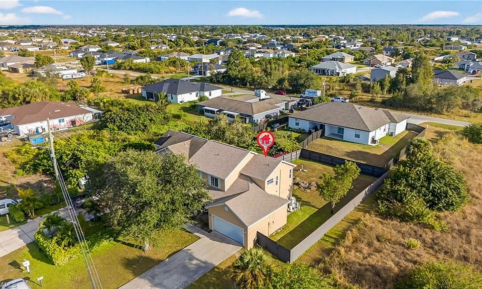 Imagine a home where space, light, and freedom welcome you at every turn, where mornings start with sun streaming through oversized sliding doors, and evenings are spent in your spacious backyard under open skies. This unique, no-HOA home in Lehigh Acres spans 2,131 sq ft and is a rare find—a duplex configured as a single-family home, offering unmatched flexibility for living, entertaining, or generating rental income. Soaring 10’ ceilings, a grand formal dining room, and an expansive family room flow seamlessly into a bright, renovated white kitchen with granite countertops, a new sink, and a new dishwasher. Oversized 8’ sliding glass doors open to a fully fenced backyard, creating a serene indoor-outdoor connection perfect for gatherings, play, or quiet relaxation. A half bath, direct entry to the spacious 1-car garage, and a six-car cement driveway complete the first floor. Upstairs, all three bedrooms serve as spacious, tranquil retreats for family, guests, or a home office. Recent updates, including a new roof (2025) and a new septic tank, provide peace of mind, while the home’s layout and size also make it a perfect rental investment, offering potential income without compromising daily living. Located in Lehigh Acres, this property delivers space, privacy, and flexibility just minutes from SR-82, with effortless access to Fort Myers, I-75, RSW International Airport, shopping, and dining, all while remaining outside of a flood zone. More than a house, this is a home to live freely, entertain beautifully, and create lasting memories—truly a one-of-a-kind opportunity that blends lifestyle, luxury, and smart investment.