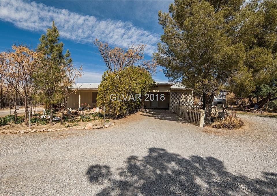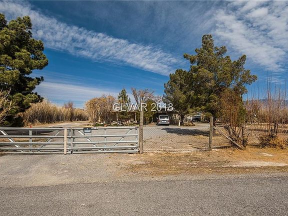 Super cozy 3bed on nearly 1 acre, right by hospital off BASIN near shopping! idyllic landscape, animal pens (removable upon request). TONS of parking & Carport. Open:fam/liv/din/kitchen layout. 3 Full baths (on-suite for 2rms) Addition on back adds tons of extra storage & utility space! Enjoy your back deck with UNOBSTRUCTED VIEWS of Mt. Charleston!! RV-Carpot in Back. Large Well house w/work space. Small extra storage shed also. PRIVATE yard.