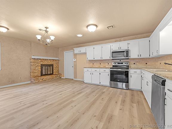 This house has all the amenities any family needs to call it home!3 beds, 2 bathrooms, 2 car garage that has an extra room behind the garage that could be used for a workshop, mancave, she shed, or just extra storage, storm shelter, with a big open living room to the Kitchen. Sits on more than half an acre with enough room to run around with the kiddos in the front yard. Updates include: new vinyl floors, new carpet, granite countertops, SS appliances, new roof, new thermal windows. 5-10 minutes from all Collinsville schools. 10 minutes to both major highway 75 & 169. Owner is agent. Property is eligible for 100% financing through USDA Loan.