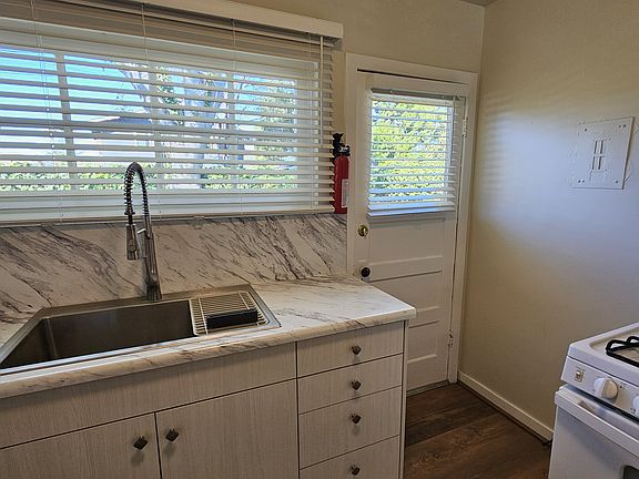 This mid county updated single-story unit features a charming front yard and thoughtful renovations throughout. Enjoy all-new flooring, fresh paint, and updated kitchen amenities, including some new cabinets, countertops, a stove hood, and a refrigerator. The bathroom will have a new sink and fixtures, while the spacious layout includes a comfortable living room, a dining area, and a bedroom with a large walk-in closet conveniently located just outside the bedroom. Situated in a duplex with only one shared wall, the property also includes a commercial office building and a six-plex. Water & Garbage Included. Owner is not accepting pets. No pets one year lease required.