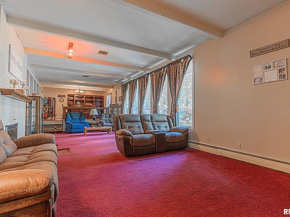 Back on the market due to NO fault of the home!! This property is over 3,000 square feet and located off of Raccoon Lake's renovated boat dock. Take a left down the asphalt paved driveway and park in the 3 car garage. Step inside to be delighted by the unique layout and view the original building plans. Featuring four bedrooms and three bathrooms, there is room for everyone! This home is perfect for entertaining with its built in bar room and retro conversation pit living room. These two spaces connect to the newly enclosed living space that features a built in grill, original to the home. In addition to the furnished kitchen that has a three compartment sink, built in oven and cook top. There is a dining room off the right overlooking the back porch. Step outside on the deck to watch the sunset over the Raccoon Lake. With a little TLC, this woodsy home could be yours!