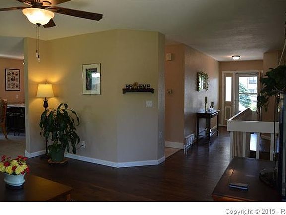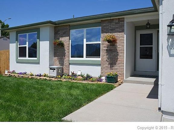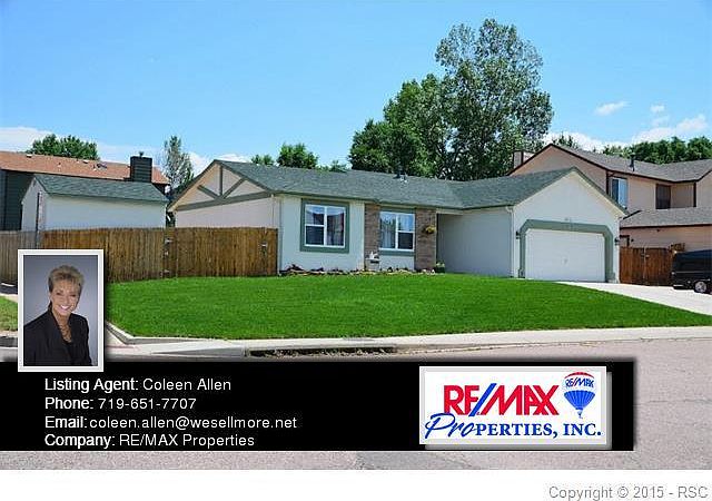 Welcome Home :) Unique & beautiful, this 5 bed/3 ba/2 car oversized, Stucco and Brick Rancher is sure to please. Situated on a Large Corner Lot with Views of the Western Mountains, and a Covered Entry. Inside are Awesome Handscraped Eng. Hardwood Floors throughout most of the Main Level. Walk on into the Large Eat-in Kitchen and Huge Dining Room Area, all surrounded by windows, letting lots of Natural Light to flood in. Updated Kitchen is complete w/Pantry, Counter Bar & all faux Stainless Appliances (No Fingerprints)! Inviting Family Room walks out to backyard patio and beutifully Manicured Lawn, Fully Fenced to 2 Large Gates and RV Parking Pad, Hot Tub and 10x17 Stucco'd Shed with Concrete Floor and Power. Master is carpeted w/Double Door Entry & on-suite 4-piece bathroom & Walk-in Closet. 2 other Generous Bedrooms with Big Mtn. Views and a Full Bath. Downstairs is a large lighted crawl-space for storage, 2 more Large Bedrooms & a 3/4 Bath. 5th Bedroom could be used as a Den, it's very large. Moist Cool air with Swamp Cooler, Washer, Dryer, Central Vacuuming, Refrigerator & Hot Tub also included. Well Organized with ample storage. Feels like Home! Come take a look. Listing Agent: Coleen Allen Company: RE/MAX Properties, Inc. Phone: 719-651-7707 Email: coleen.allen@wesellmore.net