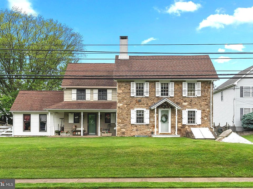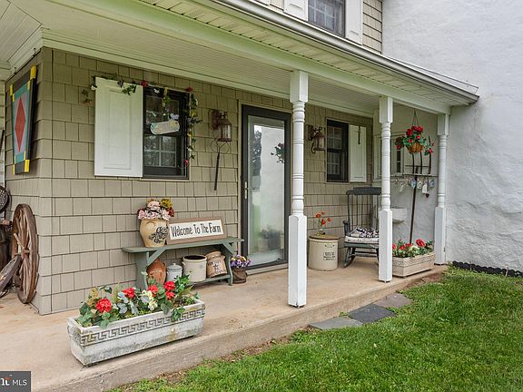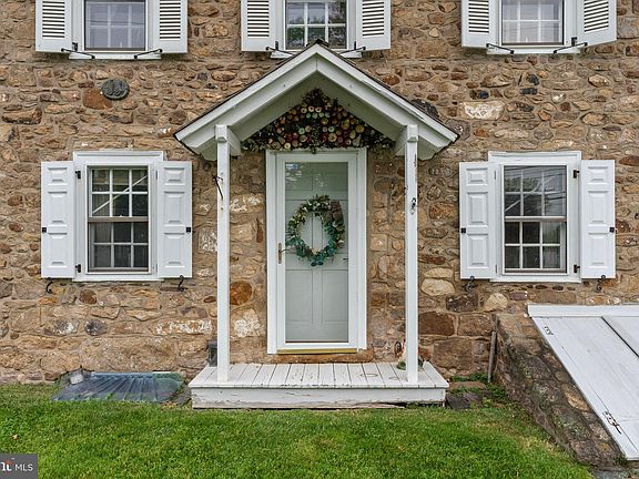 Welcome to a quintessential Bucks County gem, known as Duffield Farm, where the echoes of the early 1800’s blend seamlessly with the comforts of modern living. Meticulously restored and thoughtfully upgraded for 21st-century living, this enchanting residence seamlessly marries old-world charm with contemporary comfort. Step through the door and be greeted by the warm embrace of history, where original architectural features evoke a sense of nostalgia and reverence. Walking through the front door you are greeted by a hand painted wall mural, full bathroom to the right with walk-in shower and first floor spacious laundry/mud room to the left. This charming entrance leads you to the sunny dining area with bay window seating. Adjacent is a cozy family room with vaulted ceilings and exposed beams as well as a staircase leading to the upstairs. There are hardwood floors throughout most of the house and the original early wide plank hardwood floors in the formal living room, accessed from the kitchen. In the living room is a large stone hearth with a working gas fireplace, exposed ceiling beams and some of the original elements such as a stone sink which is now a decorative feature in one of the nooks of the room. As you explore the spacious interior, you'll discover a harmonious blend of tradition and innovation. The kitchen, adorned with granite countertops and ample storage space, offers a modern culinary sanctuary without compromising the farmhouse's authentic character. One of the highlights of this farmhouse is the added sun porch—a tranquil haven that invites you to relax and unwind. With views of the backyard and a skylight to let in the natural light, it's the perfect spot for enjoying your morning coffee or hosting intimate gatherings with friends and family. The upstairs can be accessed from the open staircase or the original enclosed winding staircase. The upstairs features two ample sized bedrooms including the primary bedroom with fireplace and walk in closet. The walk-up attic is easily accessible and provides a lot of extra space for storage. Across the hall is a full bathroom with a stand-up shower as well as a jacuzzi tub. There is a sitting area/loft at the top of the stairs that offers additional space to relax and enjoy the backyard views. Outside, the expansive backyard boasts mature trees, a stone walkway leading to the large garden and a shed for additional storage. The iconic wagon shed at the top of the driveway also provides plenty of outdoor storage. The basement is accessed from the outside through Bilko doors and houses the gas furnace and hot water heater offering plenty of space for storage or a workshop. Another unique feature is the root cellar, also accessed from the outside through a hatch door. This historic farmhouse radiates a timeless allure, captivating all who are drawn to its storied embrace. This remarkable residence offers a sanctuary where past and present converge in perfect harmony.