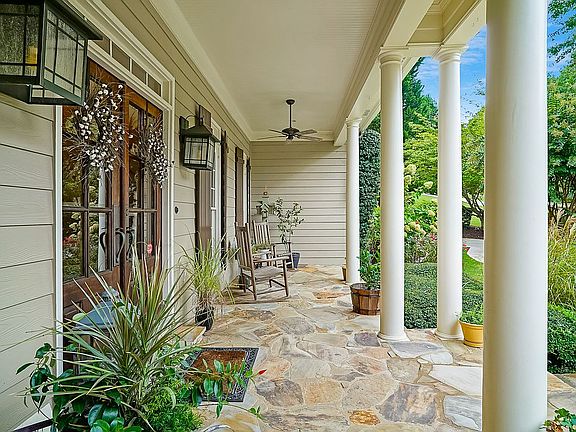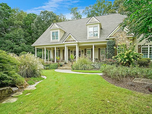 Distinctive home on more than 2-acres of private, wooded land at the end of a cul-de-sac. Koi pond, fire pit on the flagstone patio, oversize screened porch, wooded views at the back of your property. Well-appointed home features hardwood flooring throughout. Stunning great room has cathedral ceilings highlighted by exposed beams, floor-to-ceiling stacked-stone fireplace and built-in bookcases. The master bedroom is truly a suite with separate sleeping quarters, generous sitting area with doors to both the wrap-around front porch and the screened-in porch and a recently renovated master bath with all the bells and whistles! So much room to spread out. You'll feel as if you are miles away from city life, but you'll just be a short drive to all of the trendy shops and restaurants in sought-after downtown Alpharetta.