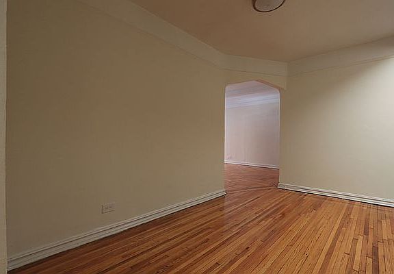This one bedroom apartment is located on the first floor of a dead end block. Recent renovations to the apartment included refreshed floors, painting glazing of the tub, and new solid wood doors throughout. The building has laundry and FIOS available. The apartment is large with the kitchen separating the rooms. The living room is a pre-war size with beautiful beams on the ceiling. the kitchen has plenty of cabinetry, and counter space. It comes equipped with a stainless steel stove and fridge. The cherry wood cabinets are comforting. There is a large space that would work well for a dinning room. There are two extra wide closets in the hallway leading to the bathroom/bedroom. The bathroom was done with a contemporary soft beige look. The bedroom can hold a king sized bed and does have a closet. There are 3 windows in the bedroom. Hardwood floors throughout.