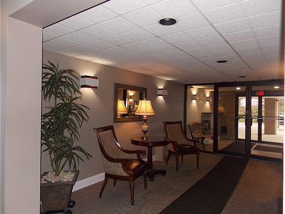 Safe and Secure in this beautiful 2 bedroom, 2 bath high rise Condo. Nothing to do but move right in. Newer electric furnaces. New windows. Updated bathrooms that are convenient and accessible. Large living room with a solid brick wall. Glass sliding doors to the balcony area. Kitchen updated. Back stairs from the unit to the stairwell. Fourth floor convenience. Large party room. Storage locker in the basement. One car garage with garage door opener. One reserved additional space. Convenient to all shopping and travel.