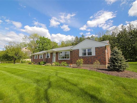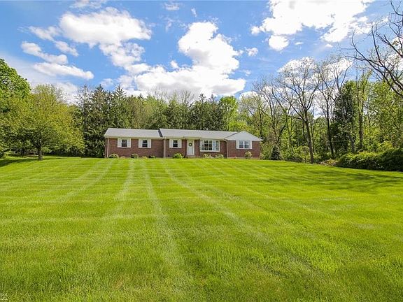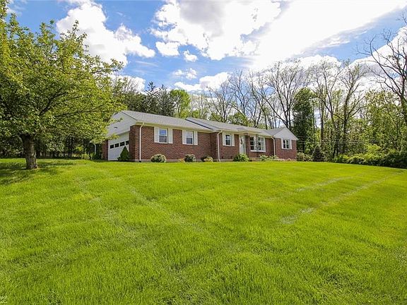 Beautifully maintained brick Ranch set far back off the road on a 1.51 acre pristine tree-lined lot. This is the 1st time that the property is being offered. The front entry opens into the living room & dining room combination w/a large bay window, bringing in plenty of natural sunlight. The eat-in kitchen has tile flooring, plenty of cabinet space & entry to a 2 car garage which has a staircase to the basement. The remaining indoor space includes a master bedroom, 2 additional bedrooms (1 currently used a den) & full bath. Hardwood floors under the carpeting. The lower level offers a recreation room and unfinished storage area. A new roof was installed in 2016, expanded driveway for easy entry & exit, a large covered patio + utility shed, add to the homes appeal.