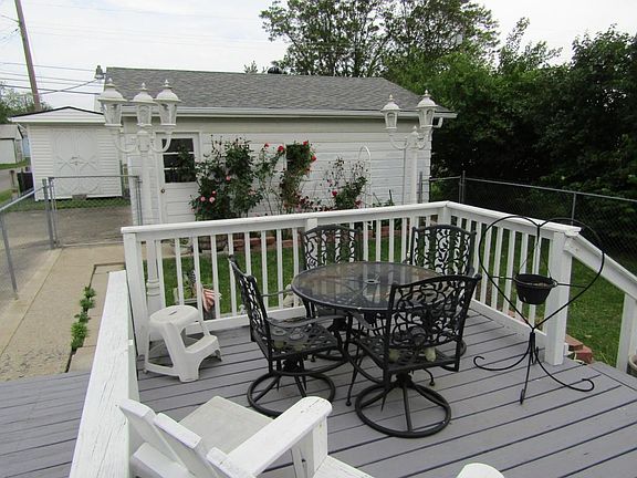 This charming home features 2 spacious bedrooms, 1 bathroom, living room, dining room, large kitchen with tons of cabinet space, newer built-in wall oven, newer gas cook top, separate utility room with wash sink, gas furnace and newer central air, newer roof, replacement windows, fenced in back yard, nice rear deck and a 2 car detached garage. Must See!