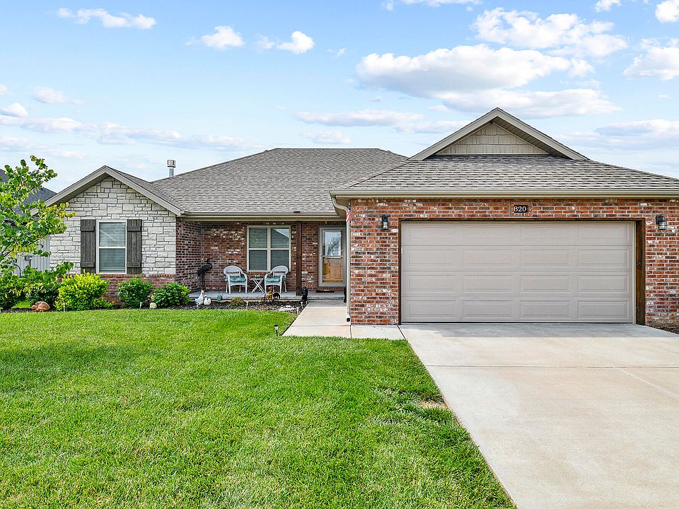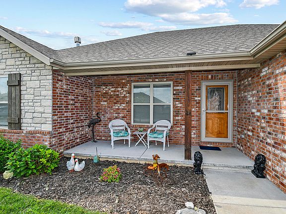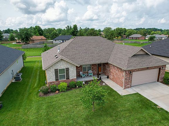 Open House Cancelled for 8/18/2024. If you're looking for a beautiful home that's better than new, Here It Is!!! You will enter into a large open living area with vaulted ceilings. The living area has plenty of room for entertaining your family and friends with a gas fireplace with the TV included. The kitchen area has granite countertops, plenty of cabinet storage space, walk-in pantry and an island with a farmers sink separating the kitchen and dining area which will take you out on the covered deck. Plenty of privacy for the Master bedroom with tray ceilings, large ensuite with dual sinks, walk-in shower and closet. On the other side of the living area are two more bedrooms with carpet and spacious closets. Come check out this remarkable home in Ozark and make it yours!!!