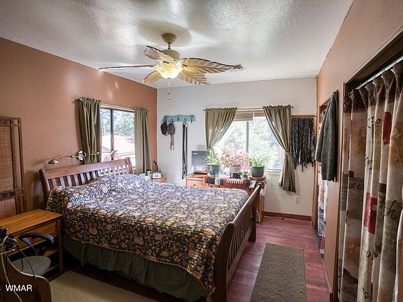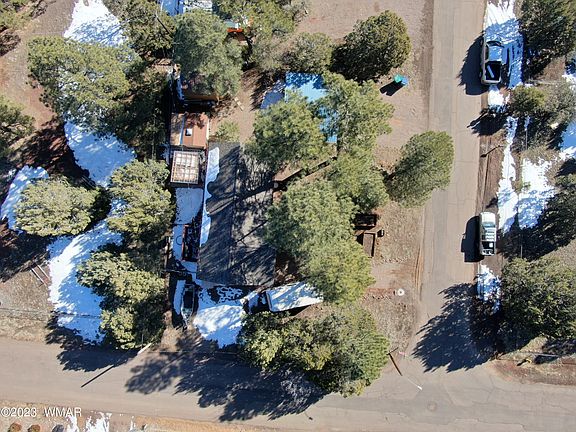 Home in the White Mountains; featuring 2 bedrooms and 2 baths and an open-concept great room. Visible beams add charm to this open, light-filled room. Decks on front and back of the house give plenty of space for entertaining. Home has whole house water filtration system, hot water circulation pump and windows are thermal pane. Sheds: 8x12 shed has workbench, 12x12 shed with built-in storage shelves