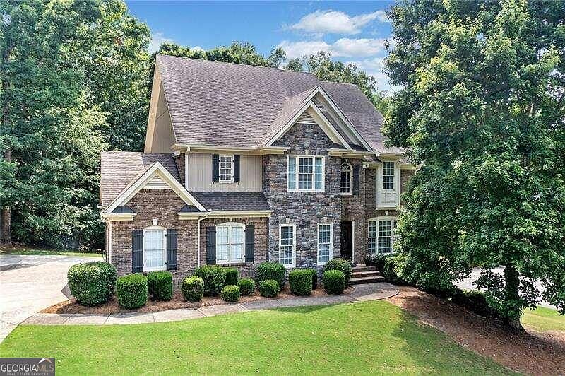 Nestled in the coveted Lake Sovereign neighborhood, this alluring cul-de-sac home is a true gem. Its long flat driveway leads to a two-car garage, inviting you into a meticulously maintained haven of quality and care. A grand two-story foyer welcomes you, while a spacious dining room sets the scene for elegant gatherings. Conveniently located on the main level is an office or guest bedroom, adjacent to a full bathroom. The living room captivates with a breathtaking stone fireplace, creating an inviting and warm ambiance. The gourmet kitchen impresses with its granite countertops, pantry, gas cooktop, double ovens, and breakfast nook. The keeping room exudes comfort and coziness with another stunning stone fireplace. From here, a door leads to a magnificently crafted screened-in porch, where no expense was spared. This inviting space overlooks a well appointed backyard, offering the perfect retreat. Ascending to the second floor, the owner's suite boasts a spacious bedroom and luxurious bathroom equipped with separate his and her vanities, a large whirlpool tub, separate shower, and generous walk-in closet. Additionally, there are three over-sized bedrooms upstairs, one with an en-suite bathroom and the other two sharing a Jack-and-Jill style bathroom. The home's amazing finished basement features the same high-end finishes as the main living areas. It includes a kitchenette with sink, cabinets, and a hook-up for a refrigerator. There is also a sizable bedroom with walk-in closet and full bathroom, along with a spacious room that can flexibly serve as an office or another bedroom. New carpet has just been installed on both the main and upper levels. This move-in ready home is a must-see, meticulously maintained and ready to provide a comfortable and luxurious lifestyle.