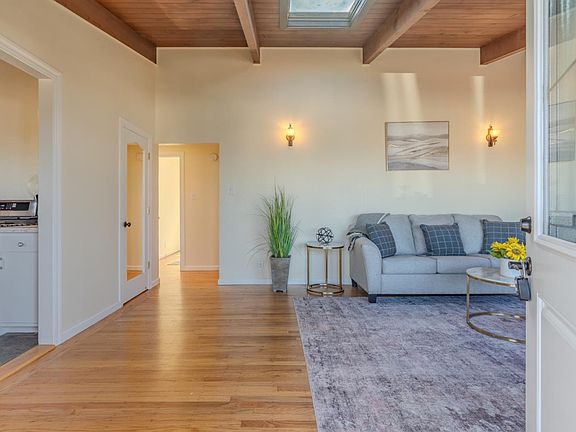 Ocean View Manor Home with versatile multi-generational living possibilities! Freshly painted inside and out, this property shines with refinished hardwood floors, new appliances, and vaulted ceilings. Multiple skylights and sliding glass doors fill the home with natural light. The flexible floor plan includes 2 full kitchens and 2 laundry hook-ups, ideal for extended family, in-law suite, or rental income. Enjoy two decksone with ocean views and another designed for BBQs and private entertainingplus a large flat yard perfect for outdoor living. A 2-car garage provides ample parking and storage. Conveniently located near beaches, hiking trails, schools, and shopping, this rare coastal retreat offers both lifestyle and opportunity.OWNED SOLAR. Climate-controlled garage.
