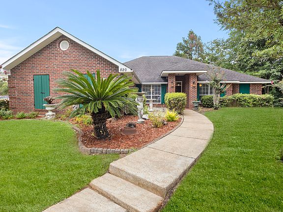 This spacious & beautiful home with split floorplan sits on an extra large corner lot. The home has formal living room/office, dining room & large family room w fireplace. The kitchen has freshly painted cabinets, new back splash, new stainless steel sink and stainless steel appliances. Spacious master features tray ceiling, garden tub, separate shower, double custom walk-in closets. Ceramic wood plank style flooring throughout public areas, new carpet in bedrooms. Double sets of French doors lead onto an extra large (12x22') attached porch overlooking the yard that is the perfect spot for entertaining friends and family. Custom made wood hurricane shutters protects all windows during storms. A custom built, cottage style man cave/she shed is nestled in the back yard. Near shopping.