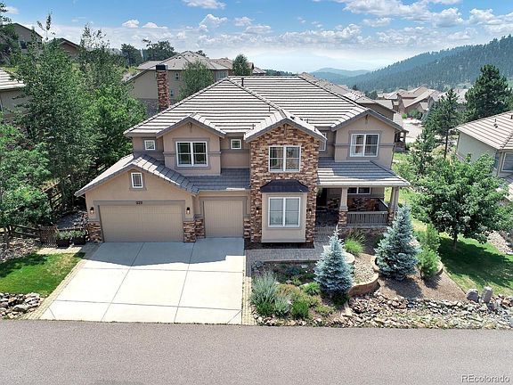 Here is an absolute incredible opportunity in Elk Rest Meadows. This is one of the largest lots with one of the largest homes and it backs to the walking trail. Great location in N. Evergreen close to good schools, amenities, hiking & biking trails, quick commute to Denver and ski resorts. The entry has beautiful hardwood floors and a curved staircase. Main level includes a large office with french doors, living room, great room with vaulted ceilings & gas fireplace, formal dining, half bath, laundry, and massive gourmet eat-in kitchen with huge island, stainless steel appliances, double oven, gas range & walks out to the covered back patio. Kitchen also opens to great room. Great room also includes a second staircase to upper level with rot iron railings. Loft in upper level. Huge master suite with wood floors. 3 more bedrooms with Jack & Jill bath, an ensuite & walk in closets. Huge lower level recreational room, workout room and office area. Tons of storage, 3 car attached garage. Solar panels. Incredible Mountain Views. Must see. One of kind and won't last long!