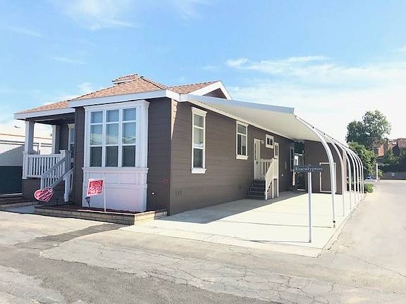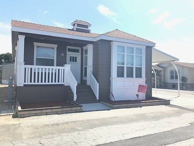 Brand New Gorgeous Skyline Model Home Now Available! LOW space rent only $1,325.00. This upgraded stunning new home offers 3 bedrooms, 2 bathrooms, a roomy open concept living room, dining room and kitchen, perfect for entertaining. This home was used as a model and has many extras. Upgraded exterior Laguna elevation with horizontal lap siding and vertical siding on balance. Upgraded window trim. Enclosed private porch off living room area. Oversized 42" wide hallway. Beautiful kitchen has an 7ft granite gourmet island with electricity, recycled bin with Espresso raised panel cabinets lazy susan, full extension drawer guides, full height granite back splash. Alabaster glass pendant lights over center island. Full stainless steel upgraded appliance package. Large master bedroom with master bath suite, double vanity, over sized shower with full tile to ceiling shower. Crown molding in living room, kitchen, dining room and hall. 9ft sidewalls with flat ceiling, crown molding, and custom paint throughout. Upgraded R33-11-22 insulation, dual-glazed vinyl framed low-E windows, 40 gallon gas water heater, washer and dryer hook-ups. So much more to this home and amazing community. Rancho La Siesta is a privately owned active senior 55+ community in Fountain Valley at 18194 Bushard. Each of the 181 homes has it's own private address, heated pool and spa, clubhouse, pet friendly (2 pets allowed) community with walking in park ok. The park has on-site manager, social groups and a community garden. Only 3 miles to the beach, LOW SPACE RENT that includes water and trash, A MUST SEE! IN-HOUSE FINANCING AVAILABLE!! Serial #FQ71-0313KA/KB. Information deemed reliable but not guaranteed. All measurements are approximate.